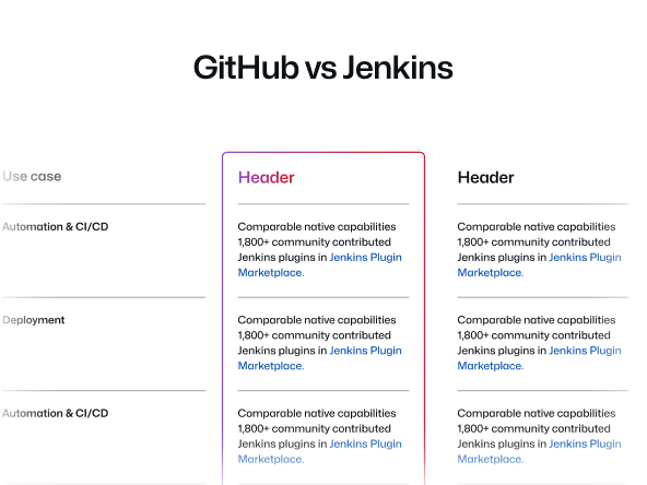 Use the comparison table component to compare two products or features in a table format.